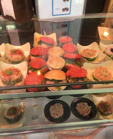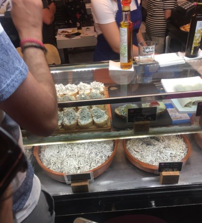 Mercado De San Miguel (the small white weird looking things are mock baby eels. The reason they are not real is because at this time, 2 lbs of them costs over 600 euros):