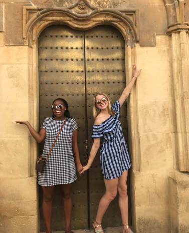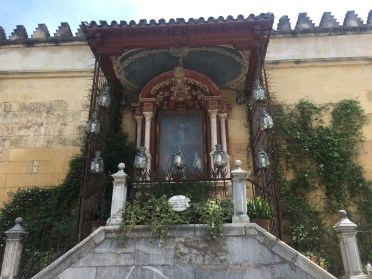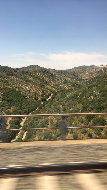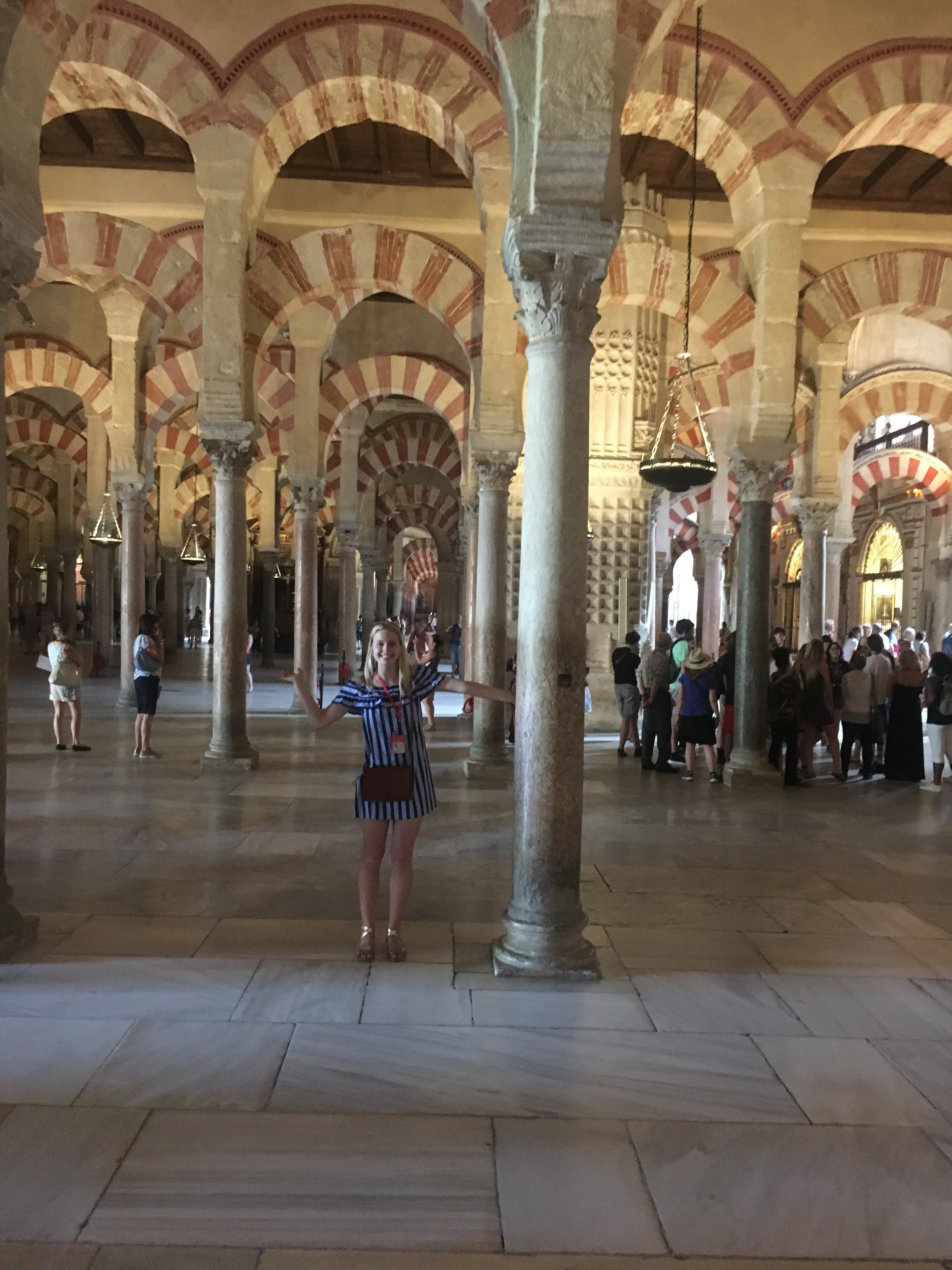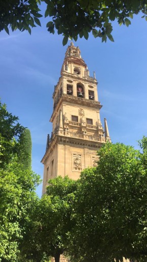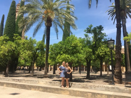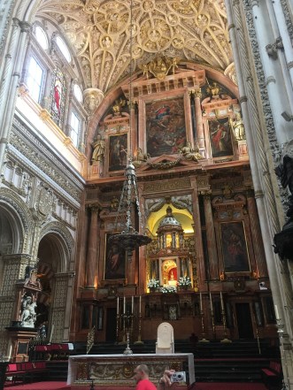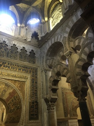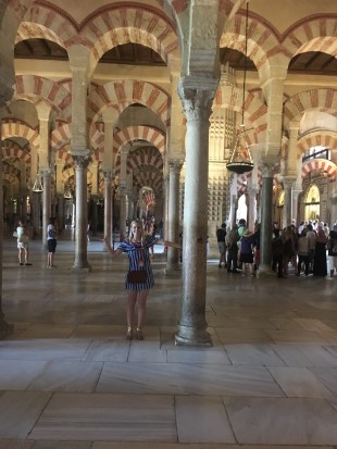 Saturday, as I said, we woke up at 5 am to make it to the train for Córdoba. Joke was on us because our professor told us an earlier time to make sure we weren’t late. It worked out in the group’s favor because people were late. However, Halle and I are always on time, and would have loved a little more sleep. Good news was we slept the whole train ride, haha. The train we took was much faster than the one we took to going hiking. We got to Córdoba in about 1 hour and 45 minutes. The train went about 200+ mph. Cordoba was just as pretty and hot as I remembered. We walked around the city and then went for a tour in the old Mosque turned Cathedral. Originally the Romans controlled Cordoba, but then the Omeya family was fighting with the Abasi and the Abasi killed all of the Omeya except for the 15 year old son who escaped and went to Códoba. He convinced the people to let him be the ruler by claiming he was the true ruler. His dad was a descendant of the prophet Mohammad, and his mom was a Berber slave. This made him connected to two aspects of their culture. After they accepted him as their ruler, they built a magnificent mosque. Not all the Christians converted, but they had to pay higher taxes, so many did. It is breathtaking. Later around 1236 or 1238, I am not sure, it was reconquered and converted into a Cathedral.